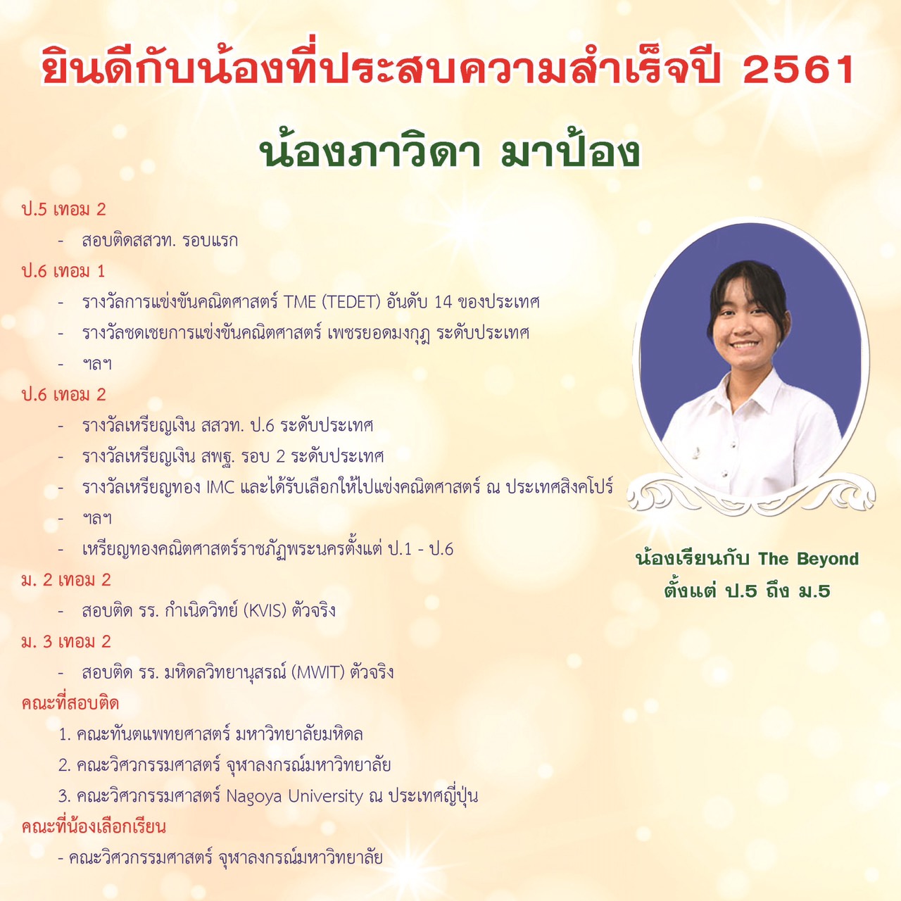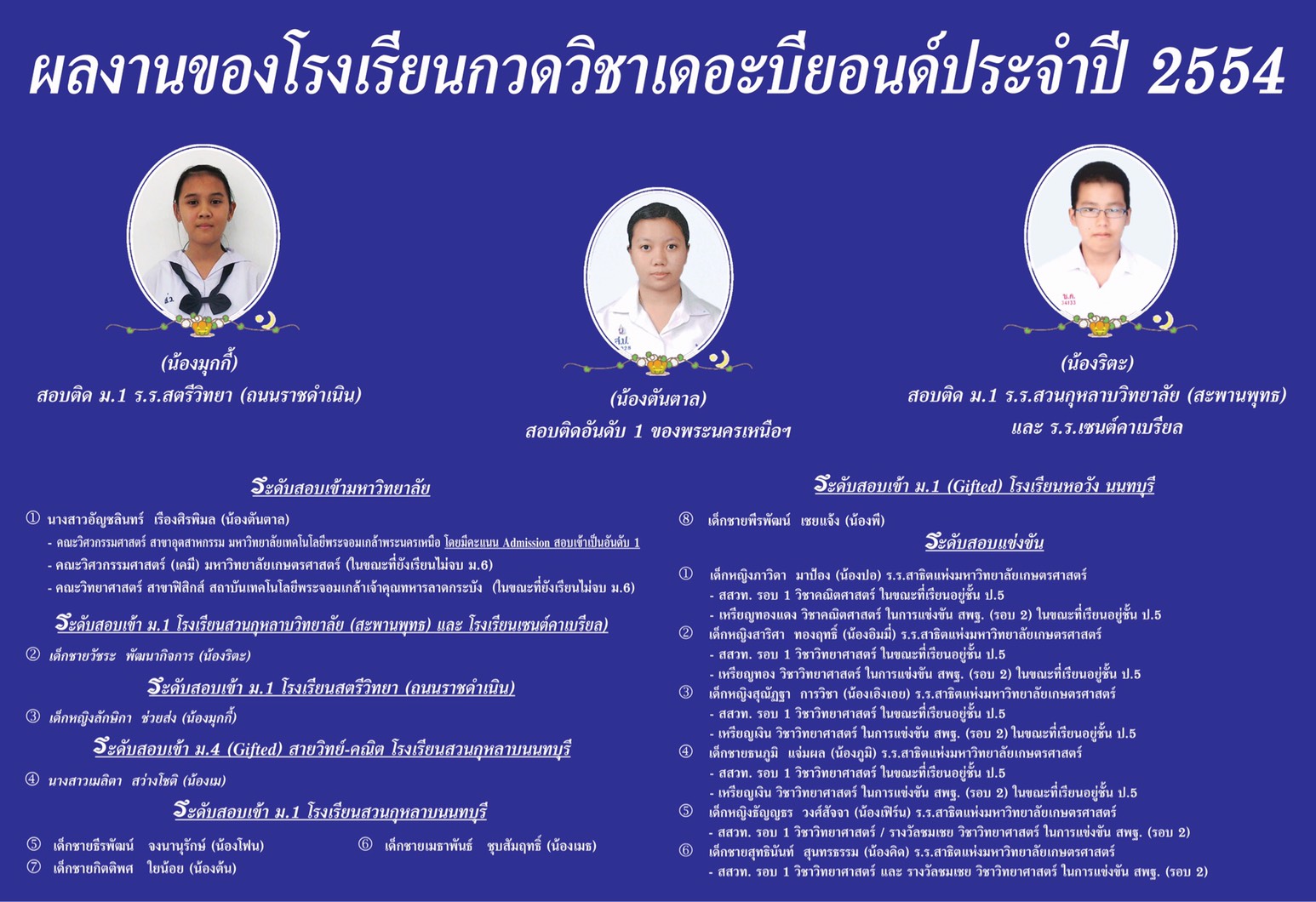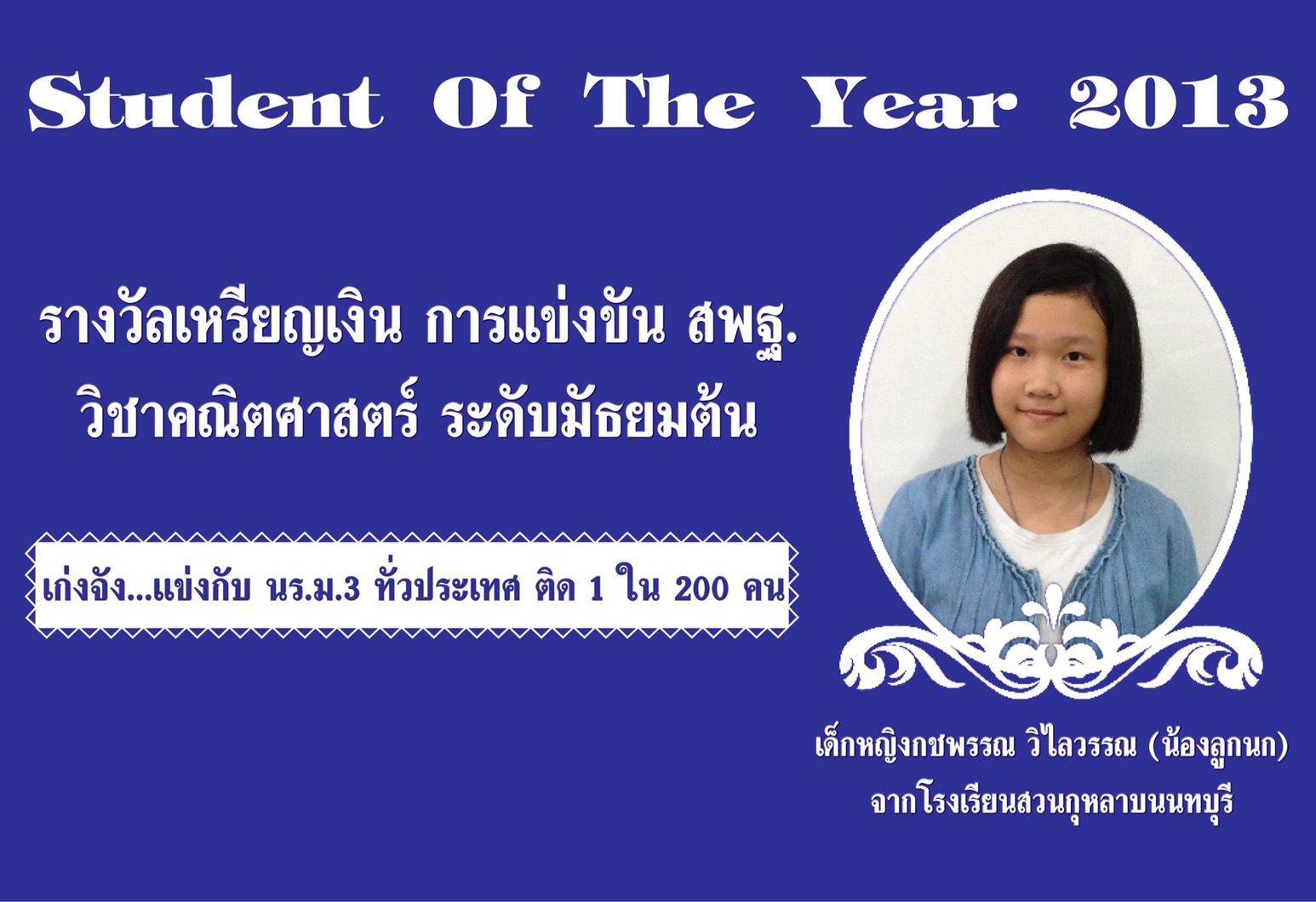 มัธยมศึกษาตอนต้น GIFTED (MATH) รร.บดินทรเดชาฯ