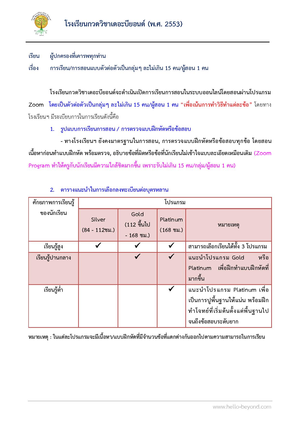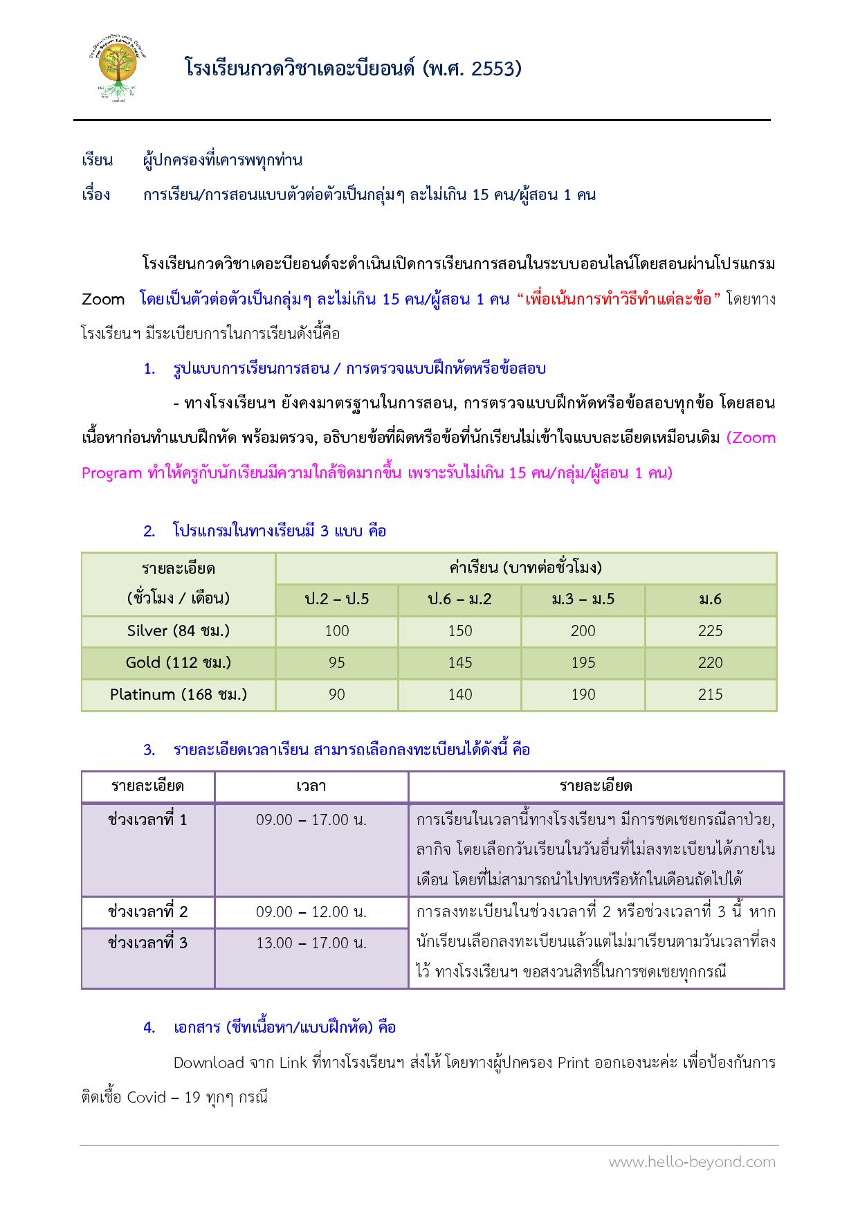 วิชาคณิตศาสตร์ - อังกฤษ ระดับ ป.4 - ม.3 (ผ่านระบบ zoom online)